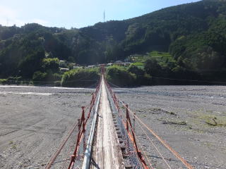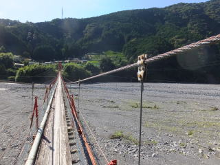 相淵の吊橋まで来た。一人で渡り始めて見たものの、矢張り恐ろしい。高所恐怖症の気があるまじなかにしてみれば、かなりの難行である。橋3分の1で諦め、Uターンをする。戻り始めると、かなり強烈な檜の香りがする。何の事は無い、バス停横が製材所で、其処から漂ってくるものと知れた。まるで、檜風呂に入っている様である。