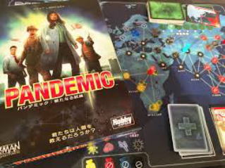 かつて、SARS流行にヒントを受けマット・リーコックがデザインした伝説的ゲーム。非常に珍しい参加全員協力型となっている。購入したもののコロナの流行を受け、未だプレイ出来ずにいたまま今に至ってしまったのは、何処か皮相的である。